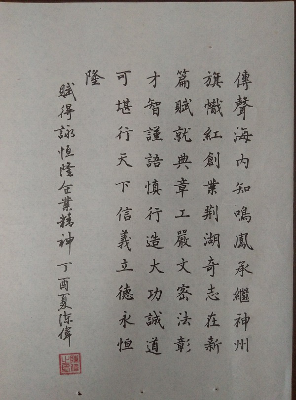 146 硬筆楷書自作詩賦得詠恒隆企業精神