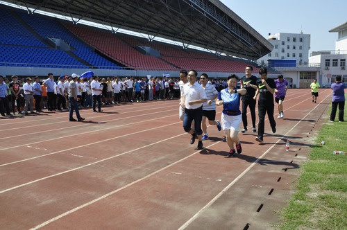 為展現恒隆員工健康向上的良好風貌,體現積極進取的團隊精神,集團工會和行管部共同舉辦2017年“創衛、環保、健康”長跑活動,于2017年5月27日下午在荊州市奧體中心舉行,活動取得圓滿成功。荊州經濟技術開發區管委會辦公室趙行彪主任、荊州職業技術學院張學中副院長、集團副總裁夏義軍、韓裕生、集團總裁助理陳遷及各公司高管等領導出席了開幕式。開幕式由集團工會主席魯修華主席主持,集團行管部寧新蓮部長代表致辭。